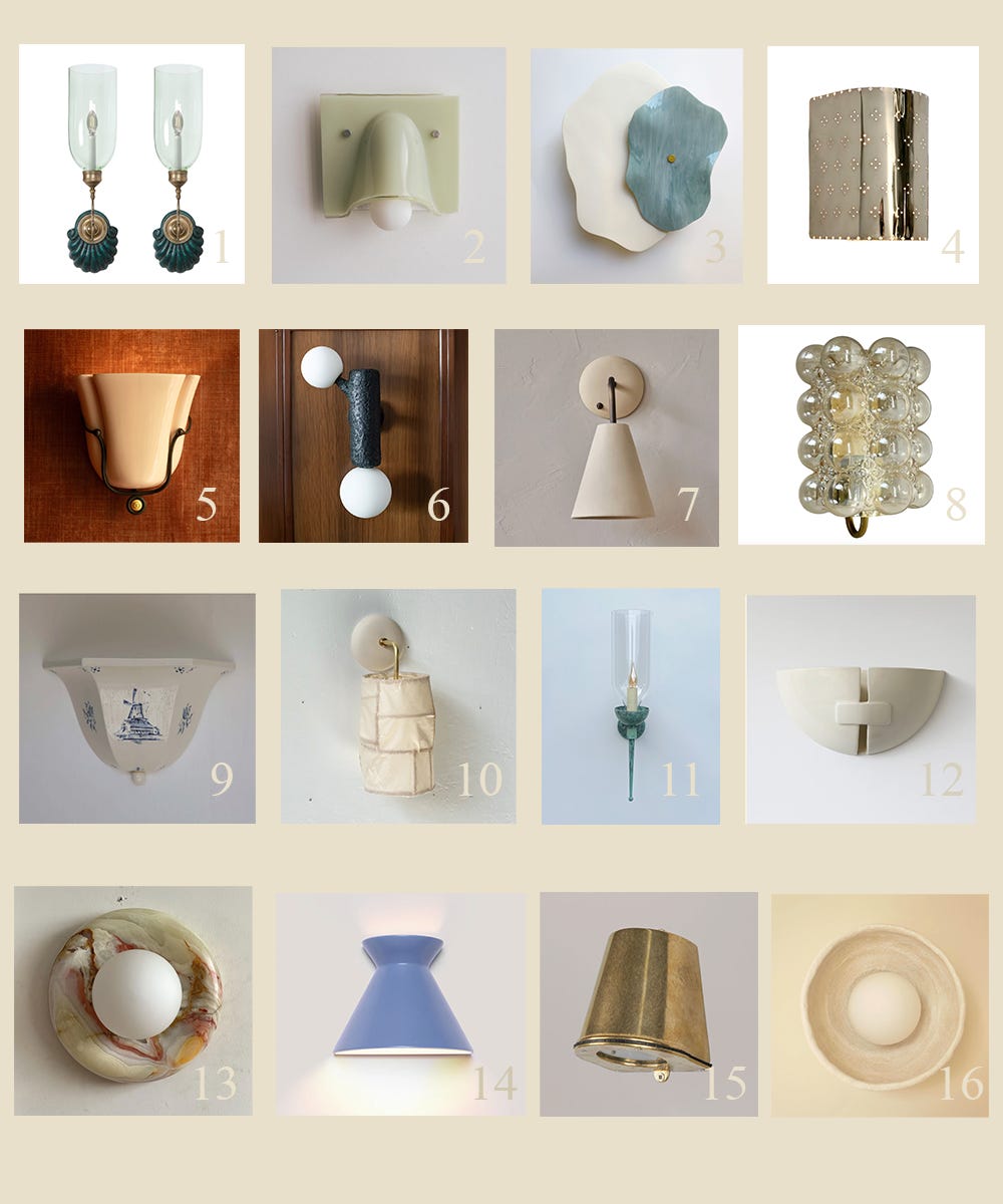Here are some of my favorite eye level lights in a price ranging from most treasured/aspirational (relatively speaking, I skipped on sharing some really high end lights), to most economic: