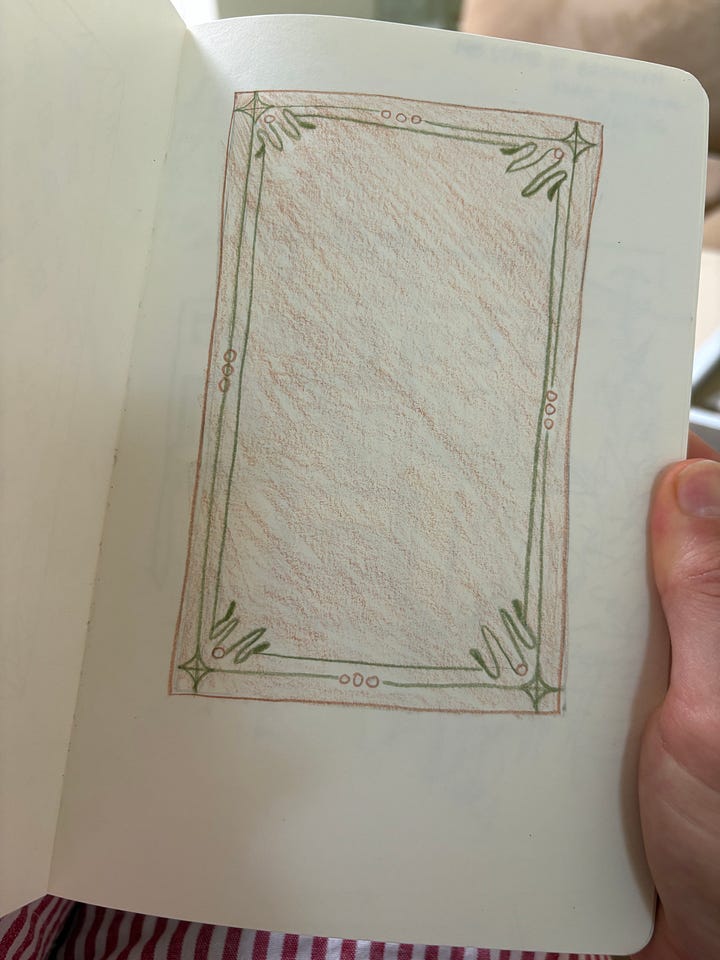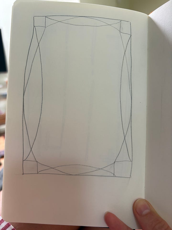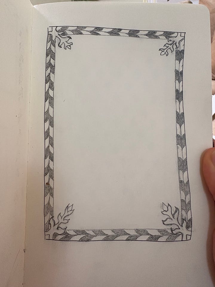 I began with pencil sketches, then colored pencil. I always draw busy, ornate designs, then I simplify.
