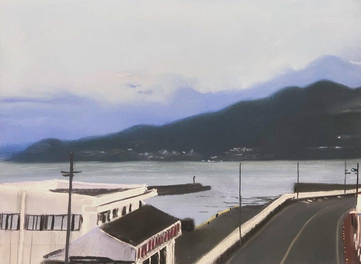 Kyohei Sakaguchi pastels and paintings: I happen to work next to a very cool shop called Haco that offers artisan made tea, ceramics, jewelry, and art all by Japanese artists. One of their recent exhibits showcased beautiful pastels and paintings by Kyohei Sakaguchi, who you can read about in Apartamento Magazine.
